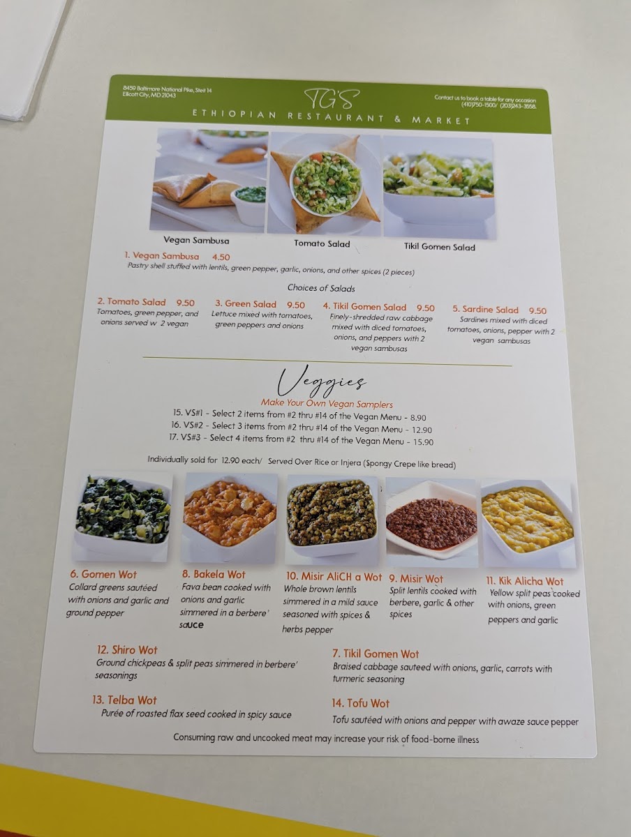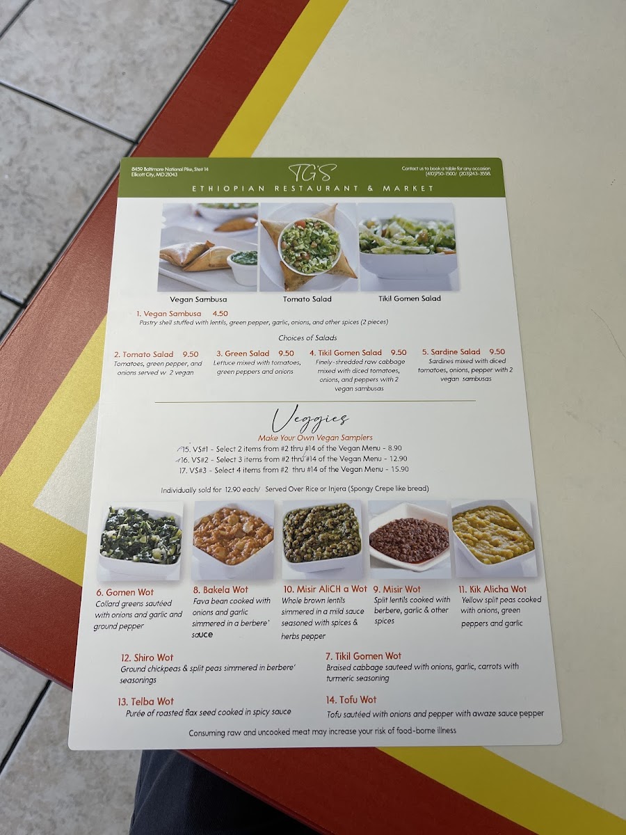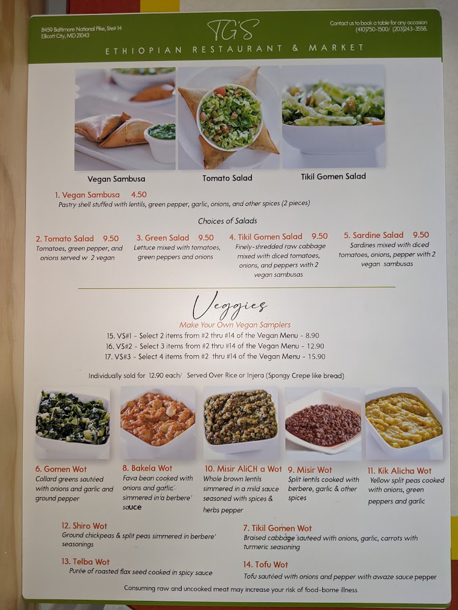 Tigi's Ethiopian Restaurant and Market Menu