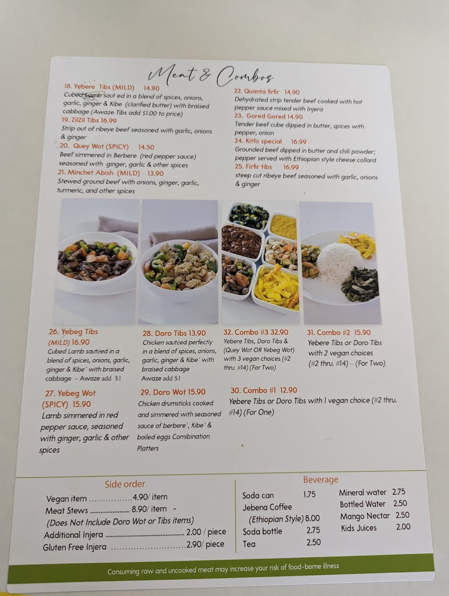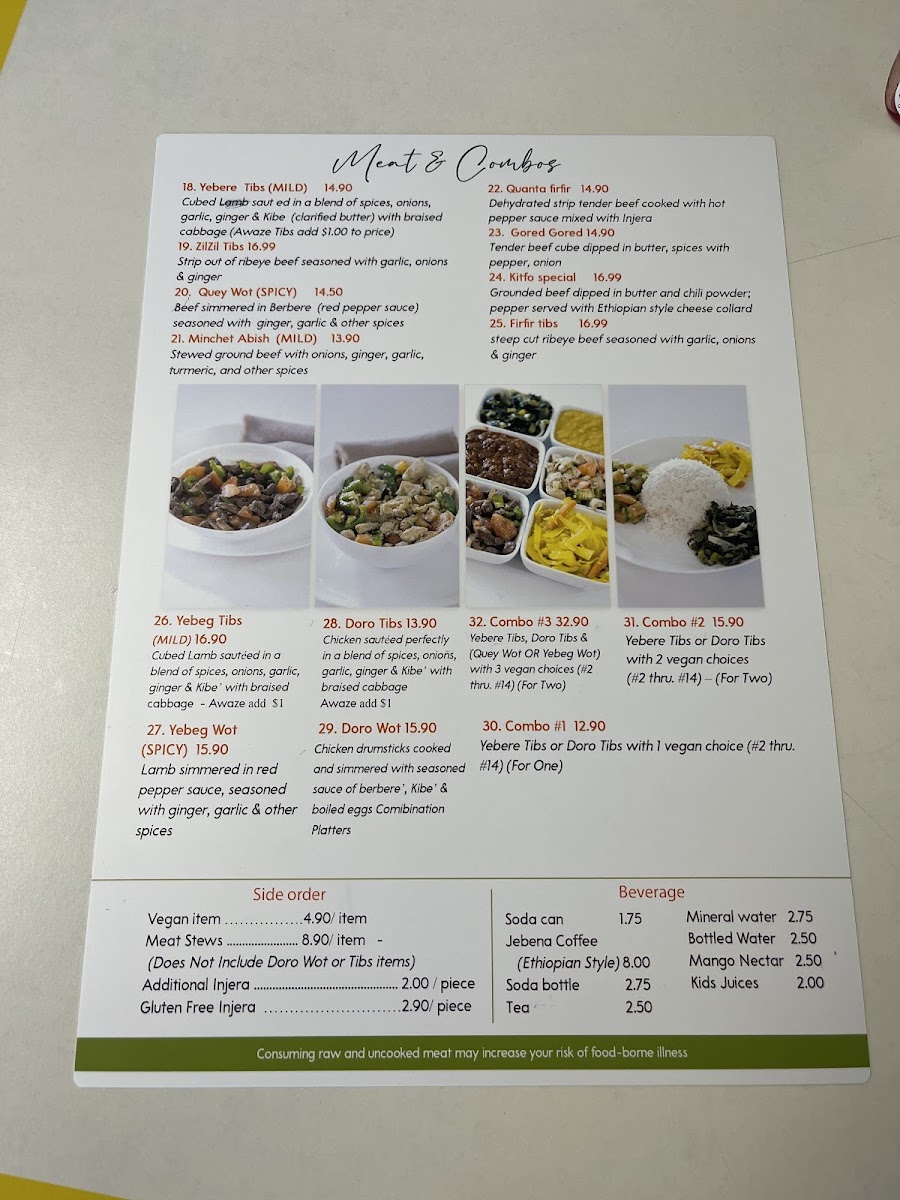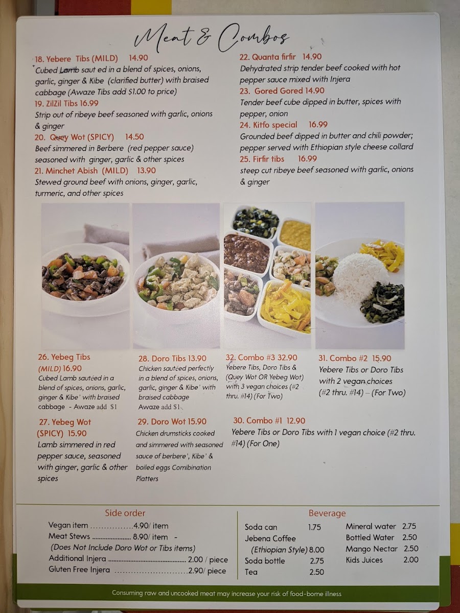 - Beef: Indulge in Yebere Tibs, featuring tender cubed beef sautéed with aromatic spices, or savor the hearty Quey Wot, a robust beef stew simmered in a rich red pepper sauce.